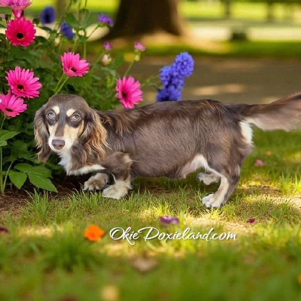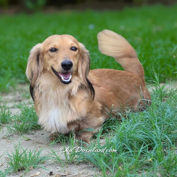 DachGraston's Well Hello, Dolly at OkieDoxieland is an AKC longhair shaded cream. She is genetically health tested. PRA Clear. She was born August 27th, 2023. This girl is from great lines.